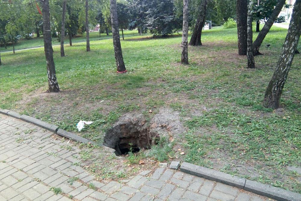После проседания грунта в сквере у областной научной библиотеки имени Н.Н. Асеева в центре Курска открылся вход в старинный подвал. Местный общественник Олег Погожих проник внутрь и снял видео.