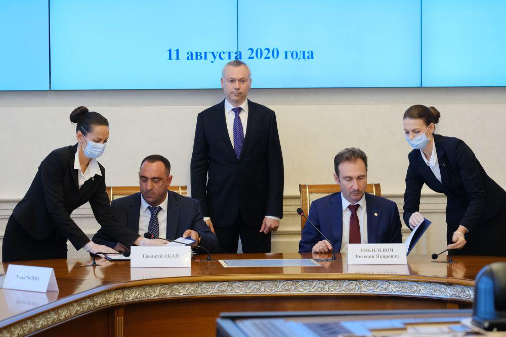 Подписание документа проходило в присутствии главы региона Андрея Травникова. Свои подписи под контрактом поставили генеральный директор АО "Аэропорт Толмачево" Евгений Янкилевич и Генджай Акай, генеральный директор ООО "Ант Япы" (входит в международный холдинг, Турция).