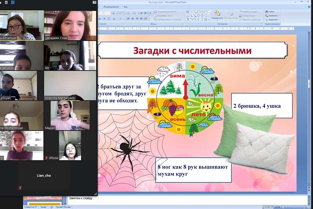 Желание учить русский язык, по мнению русистов из Армении, в стране увеличивается. Так участница Международного Пушкинского конкурса "РГ" , русист Лиана Саргсян считает, что санкции и конфликты вокруг России вызывают все больший интерес к русскому языку и культуре. "Все больше родителей хотели бы, чтобы их дети освоили русский. Согласно данным социологических исследований, таких уже 94%. Они нанимают репетиторов, дети занимаются дополнительно. Да и в армянских учебниках есть специальная рубрика: "Знакомьтесь, Россия!" - своеобразное "Россиеведение", - отмечает она.