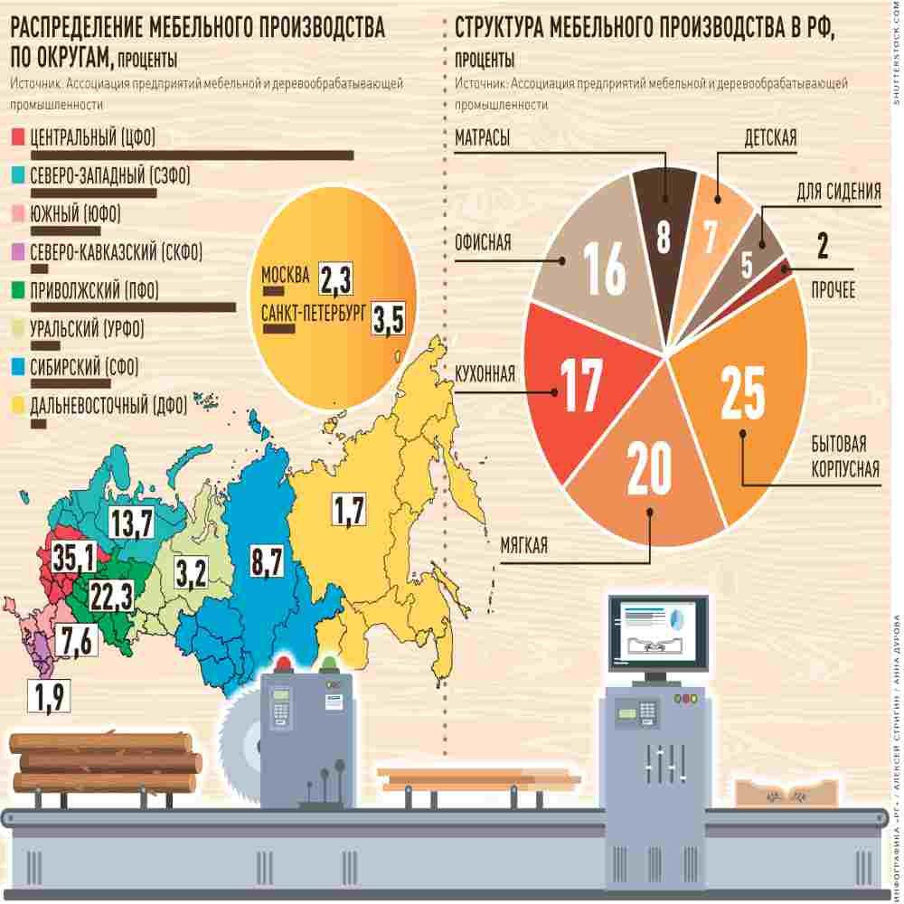 - Сегодня ни одна организация или институт учета не знают точного количества мебельных производств в России, причем даже с большим допуском. Часто говорят о 10 тысячах фабрик и цехов, а один из крупнейших поставщиков специализированного оборудования насчитывает в своей базе около 25 тысяч юридических лиц, занимающихся производством мебели в стране. Вероятно, истинная цифра где-то в интервале между этими показателями.