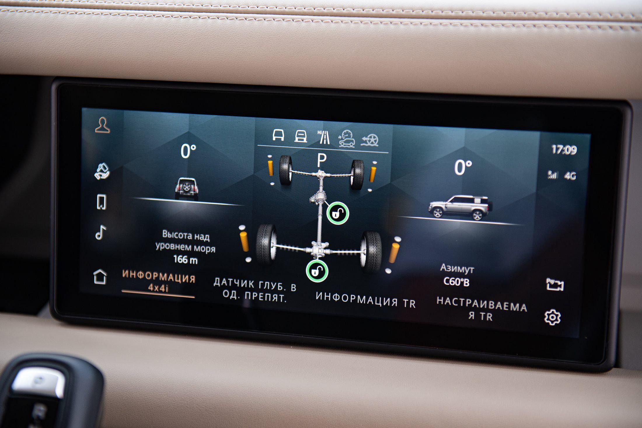 Центральный дисплей выдает отличную картинку высокого разрешения и не бликует, а сама система не тормозит, на зависть некоторым другим моделям бренда. Отдельное спасибо инженерам, которые оснастили "Деф" человеческой ручкой переключения передач, а не неудобной шайбой.