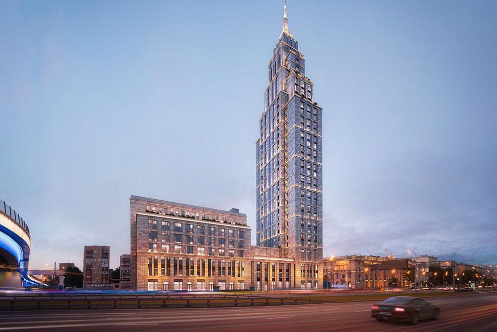 Для Ленинградского проспекта характерна сравнительно низкоэтажная застройка середины XX века. Казалось бы, гармонично вписать в этот архитектурный ландшафт высотную башню будет очень сложно, однако специалистам из архитектурной мастерской "Евгений Герасимов и партнёры" это удалось. Доминирующая Alcon Tower удачно объединила прогрессивные архитектурные решения с роскошным ар-деко первой половины прошлого века и одновременно напоминает легендарные небоскрёбы Манхэттена и семь сталинских высоток Москвы. За сходство с последними этот дом уже называют "восьмой сестрой".