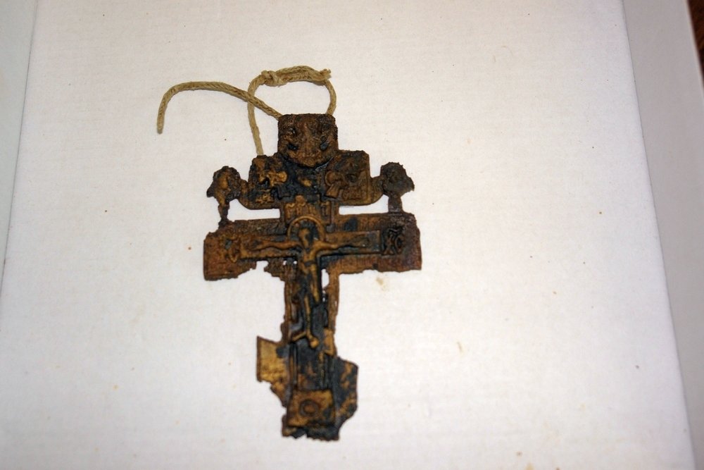 Офицерам принадлежали и два найденных латунных перстня. На одном отчетливо читается латинская буква Q, что вероятно говорит о иностранном, возможно немецком происхождении его владельца, а на втором - два скрещенных ключа. То, что фамильные перстни не из драгоценных металлов, а из латуни, скорее всего, говорит о бедности дворян. Золото вряд ли попало бы в могилу, поскольку даже позолоченных пуговиц с офицерских мундиров в захоронении не обнаружили.