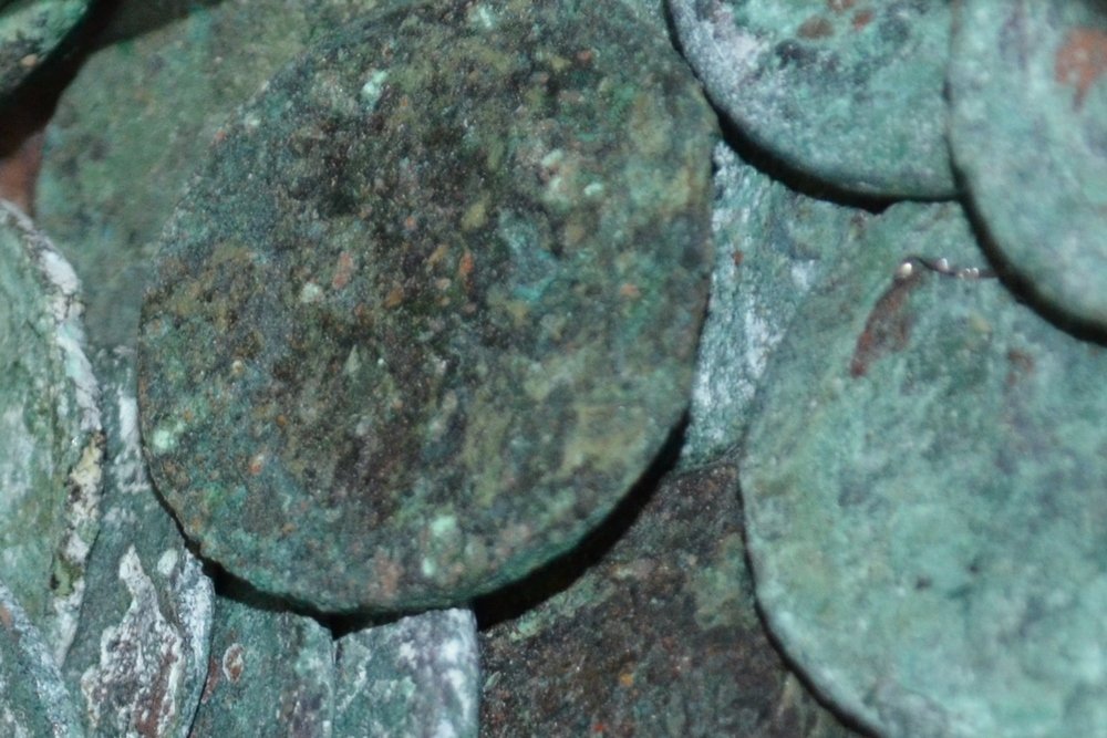Основным датирующим материалом любого захоронения традиционно считаются деньги. Кубышка с монетами была найдена в одной из могил. Самая ранняя отчеканена в 1731 году в царствование Анны Иоанновны, это дало историкам повод снова задуматься, а не было ли на этом месте более раннего кладбища? Наиболее поздняя монета датирована 1767 годом. Однако учитывая то, что все они лежали в одном кошельке, а не в разных, скорее всего монеты первой половины XVIII века к тому времени просто еще оставались в обращении. Среди всех погребенных на кладбище оказалось только два офицера. Об этом свидетельствуют найденные в могилах две шпаги и два офицерских перстня.
