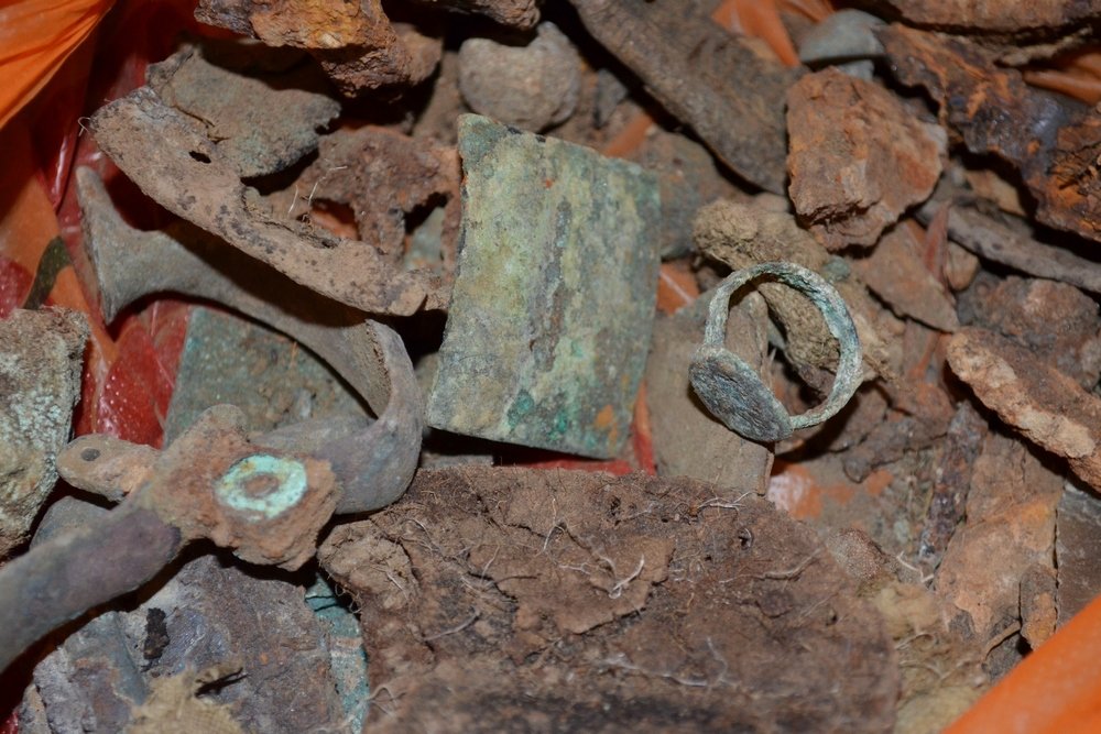 Впоследствии находок оказалось тысячи, в основном это были пуговицы от мундиров, русские и турецкие пули, нательные крестики, ладанки, разнообразные пряжки от амуниции и галстуков, фрагменты холодного и огнестрельного оружия, детали кожаной обуви. Поисковики обратили внимание на то, что большинство погребенных были молодыми людьми. На это указывали здоровые, без признаков кариеса зубы. Также бросалось в глаза, что лишь на некоторых останках были видны отверстия от характерных турецких пуль. Основная масса костяков не имела признаков травм от холодного или огнестрельного оружия. В Центральном музее Тавриды, куда передали найденные предметы, пришли к выводу, что там действительно были похоронены солдаты армии князя Долгорукова, скончавшиеся от болезней, а не павшие в сражении.