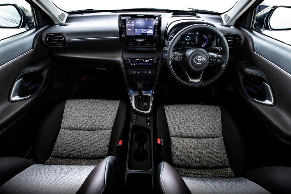 Yaris Cross изначально снабжен задним диваном со складной спинкой, разделенной на сегменты 40/20/40, багажник с фальшполом, делящим его пространство в соотношении 60/40, дверью багажники с сервоприводом. Поверхности верха передней консоли, панели дверей, рычагов КП и стояночного тормоза, руля, поручней имеют тактильно приятную мягкую фактуру, в перечне оснащения есть проектор ездовой информации на лобовое стекло.