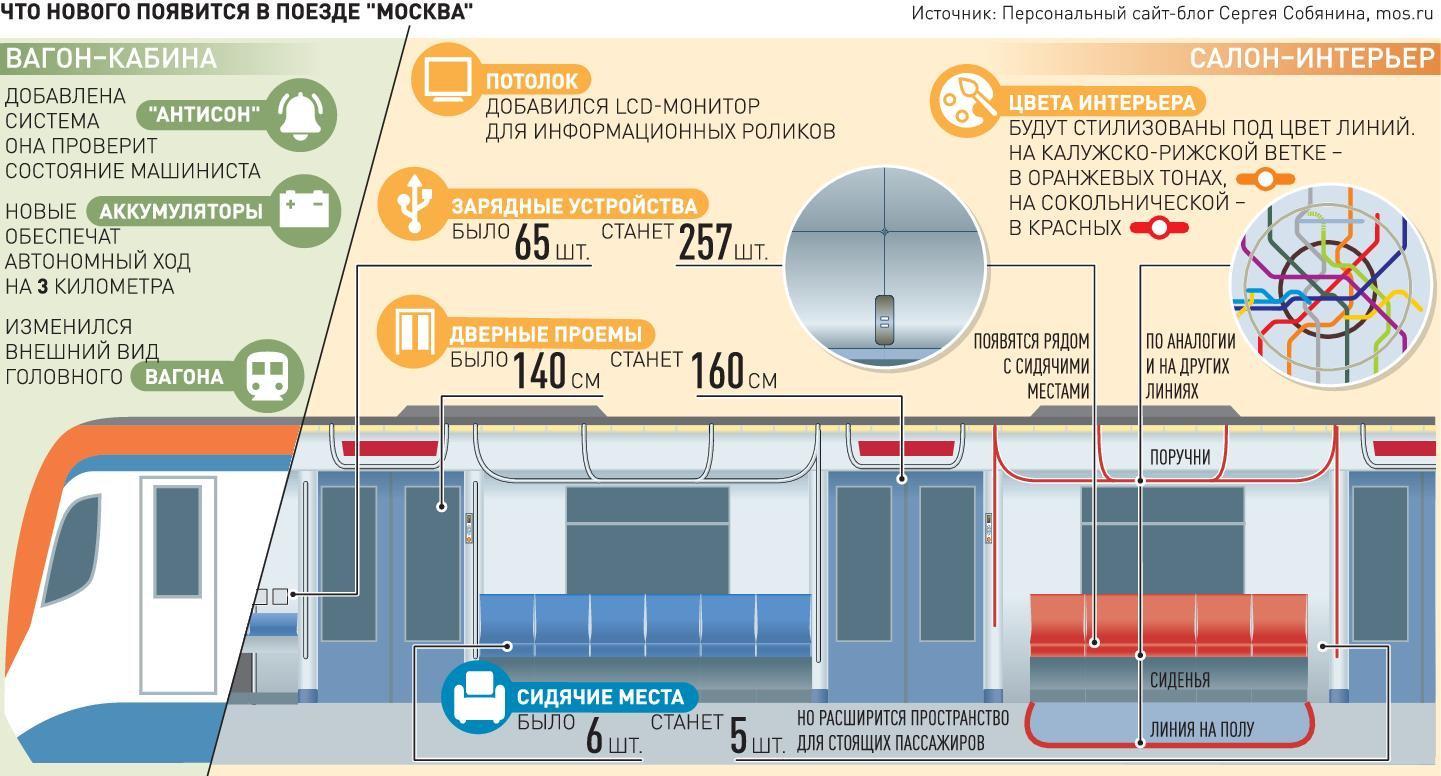 "Этот поезд по многим параметрам лучше предшественников, - сказал глава города. - За три года мы должны получить около 1 300 вагонов "Москва-2020", что на 80 процентов обновит парк нашей подземки".
