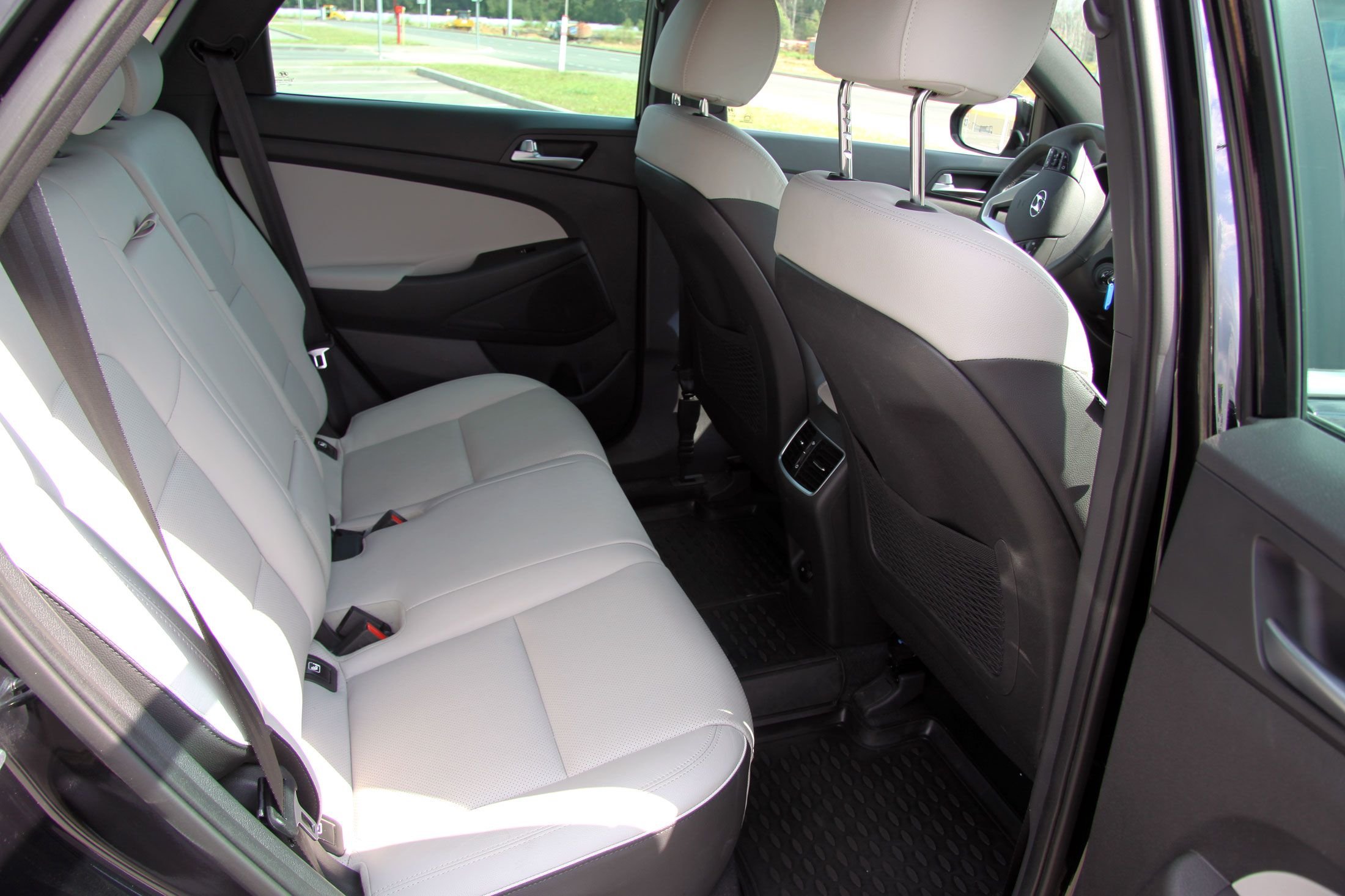 Внутреннего пространства "Туссана" достаточно для комфортной поездки четырех человек. Но пятый пассажир не приветствуется - в первую очередь на дальней дистанции. Среднее место на заднем диване отличается высокой посадкой и жесткой спинкой (в ней спрятан столик с подстаканниками), а под ногами пролегает тоннель. Зато у кресел справа и слева широчайший диапазон регулировок, сами сиденья обтянуты белой кожей, которые приятны и глазу, и на ощупь. Подогрев задних сидений доступен во многих комплектациях, а вот вентиляция кресел является прерогативой только водителя и пассажира впереди.