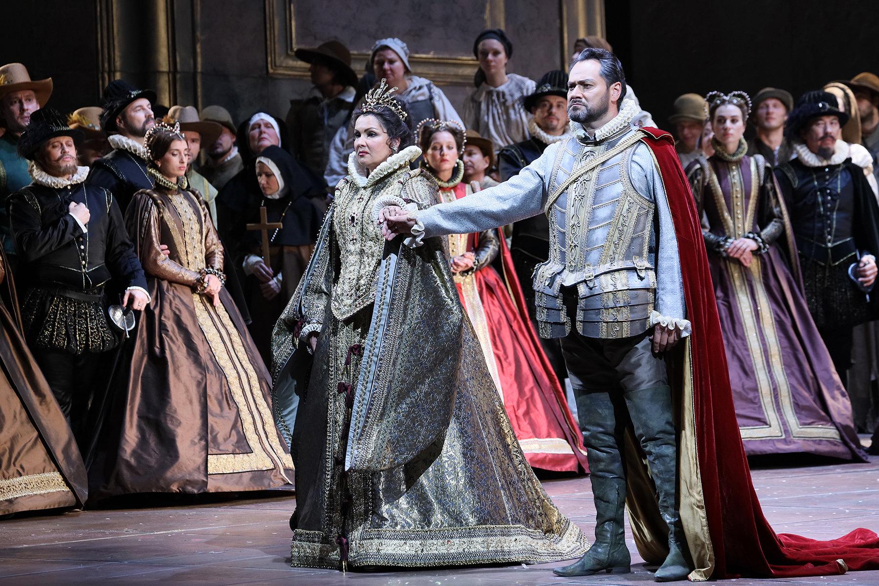 Юный наследник испанского престола Карлос (Юсиф Эйвазов) случайно встречает Елизавету из французского рода Валуа (Анна Нетребко) - их накрывает лавиной любви. Но ее, вопреки помолвке с инфантом, назначают в жены его отцу королю Филиппу (Ильдар Абдразаков), что и служит источником и катализатором всех дальнейших трагедий. Музыка "Дона Карлоса" с его мрачной историей короля Филиппа II, в эпоху которого Испания пережила "золотой век", полна сложнейших ансамблей, что требует тончайшей сыгранности, которую непросто обрести на самом первом представлении, да еще фактически после полугодовой паузы.