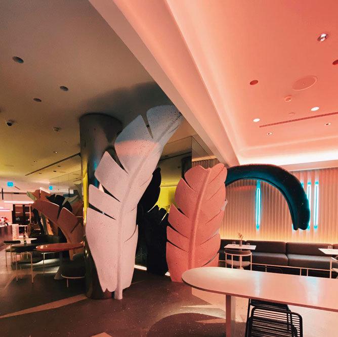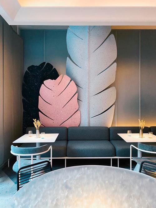 Прежде чем дело доходит до еды, посетители Bio My Bio подвергаются мощному визуальному воздействию. Созданный DA Bureau интерьер ресторана - настоящий арт-объект, способный заменить думающему посетителю несколько музеев. В нем легко обнаружить игры со светом Джеймса Таррелла, опыты с восприятием пространства Олафура Элиассона, аллюзии на сказочный мир Дюймовочки и "Алисы в Стране Чудес", круто замешанные с идеями биохакинга и желанием дольше жить и стать частью будущего. Объемные гигантские листья, отлитые в декорационных мастерских Мариинского театра, превращают зал в космические джунгли, 8-метровые литые столы подчеркивает концепцию общности и общения, а сотня световых сценариев способны полностью поменять настроение в зале от теплого чила до жесткого рейва. При этом сохраняется самое важное для ресторана - точечный свет на столы, акцентирующий еду.