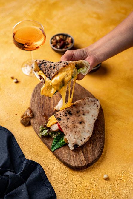 Название места, как и рецепт, тут придумали и на соответствие правилам итальянского языка не претендуют. А вот паноццо (лепешки с пустым центром типа питы), набитые курицей, капрезе, поркеттой, - привычная часть неаполитанского стрит-фуда. Еда эта калорийная и мощная, на такой "подзарядке" можно продержаться до позднего вечера.