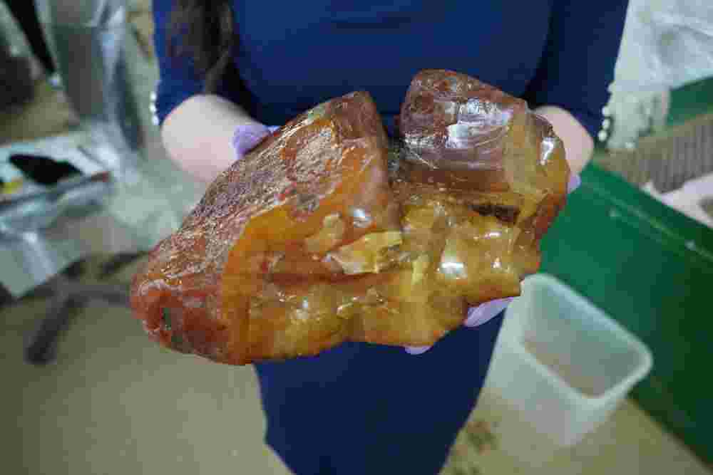 Два уникальных янтарных самородка весом 2300 и 1150 граммов добыты в Приморском карьере Калининградского янтарного комбината в один день.