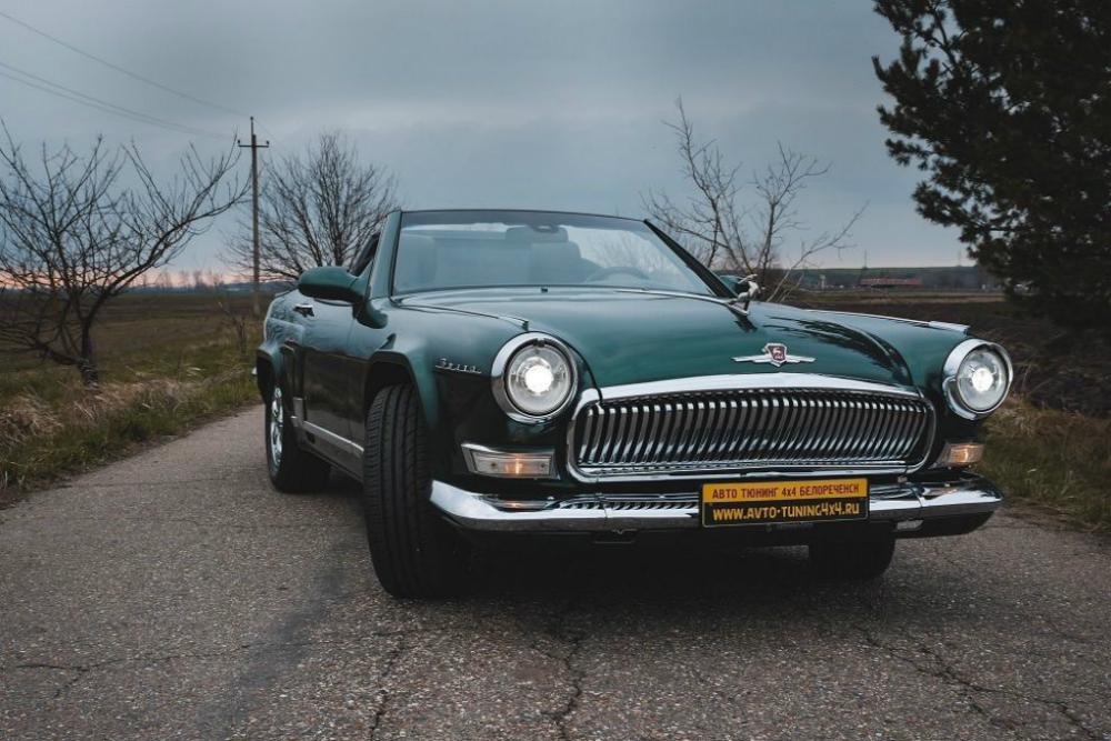 Зелёный автомобиль в стиле ГАЗ-21 "Волга" (3 серия) построен на платформе стандартного Mercedes-Benz 500 SL с пробегом 67 580 км.