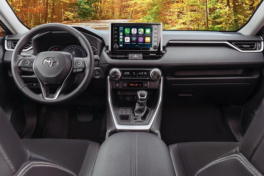 Во всех комплектациях, кроме базовой "Стандарт", Toyota RAV4 оснащается мультимедийной системой с экраном 8 дюймов (в начальной версии тачскрин на дюйм меньше) и поддержкой Apple CarPlay и Android Auto.
