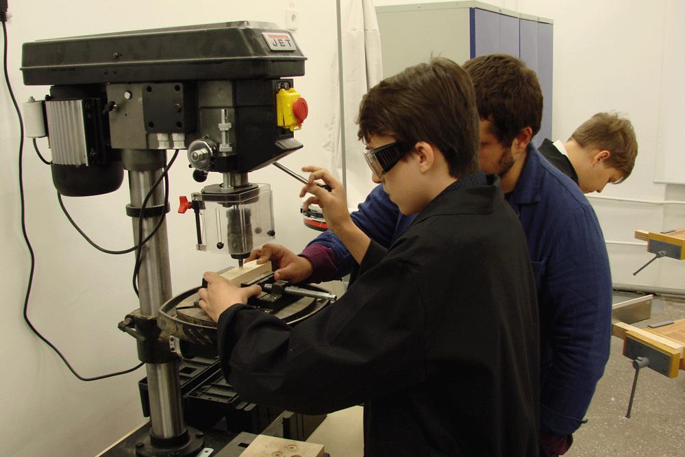 Ученик восьмого класса Кирилл Рожкин признается, что ему всегда нравилось работать с деревом: "Оно такое теплое, приятное и пахнет хорошо. Как раз сейчас учитель нам помогает мастерить настоящий табурет. Будем на станках работать, например, уже показали, как сверлить. Теперь мечтаю сделать удобный стул для бабушки на дачу - вот обрадуется, а то у нас там все качаются и разваливаются постоянно".