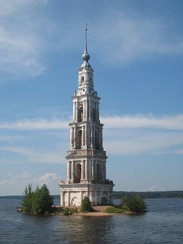 Рядом, на территории Угличского водохранилища, находится затопленная Калязинская колокольня - величественный памятник торжества духа над прогрессом, некогда часть затопленного при строительстве местной ГЭС монастыря. В советское время колокольня использовалась как маяк. А сейчас здесь вновь проводятся богослужения и совершаются молебны во время Верхневолжского крестного хода.