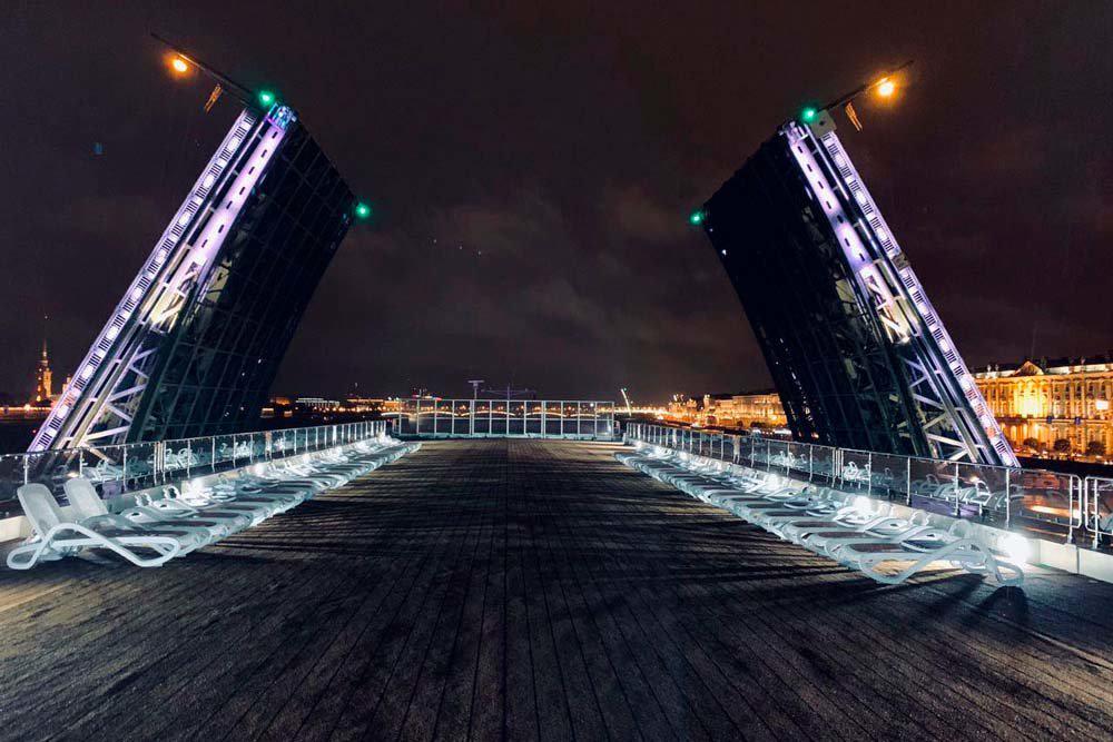 Сложно сказать, что впечатляет больше: огромные панорамные окна и современные интерьеры теплохода "Мустай Карим", на котором мы отправились по маршруту, или головокружительной красоты рассветы и закаты. А может, то, что это был единственный лайнер, получивший разрешение на проход под разведенными мостами Петербурга с туристами на борту и на швартовку в самом центре города, у Английской набережной - последнее, учитывая эпические размеры судна, привело в немалую ажитацию "сухопутных" туристов северной столицы.