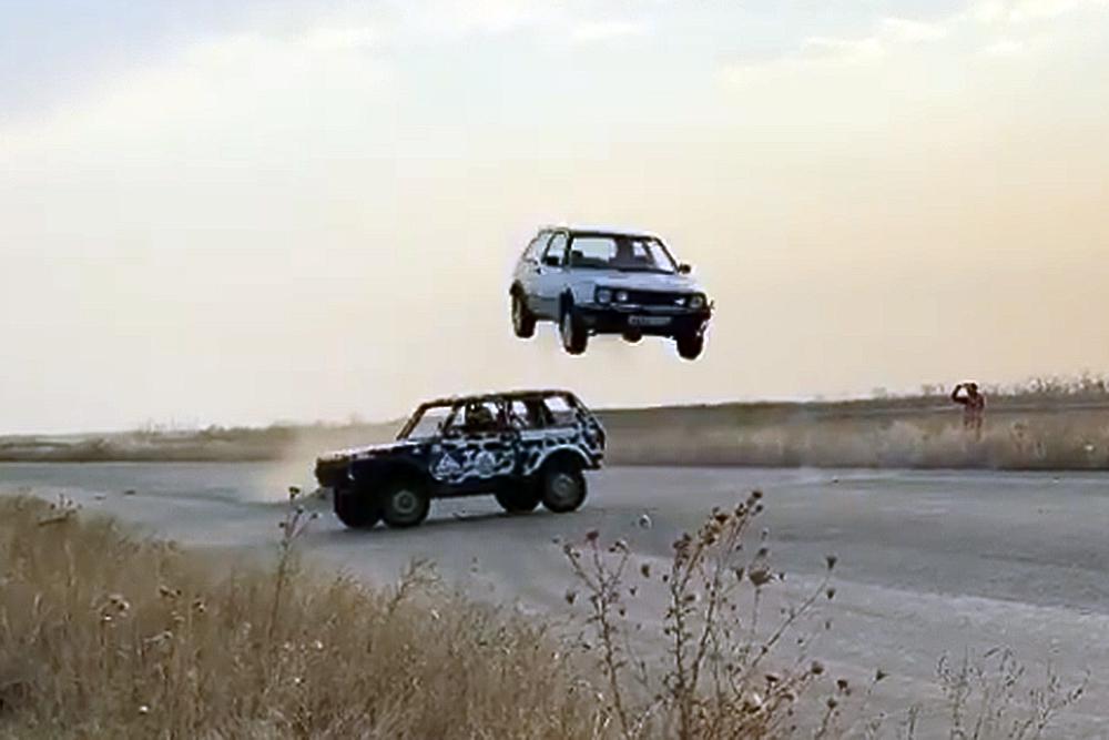 Российский блогер Евгений Чеботарёв опубликовал в Instagram видео, в котором он на старом Volkswagen Golf, приобретённом за 53 тысячи рублей, перелетает, через трёхдверный Lada 4x4, воссоздавая известную сцену из фильма "Форсаж" (и не только).