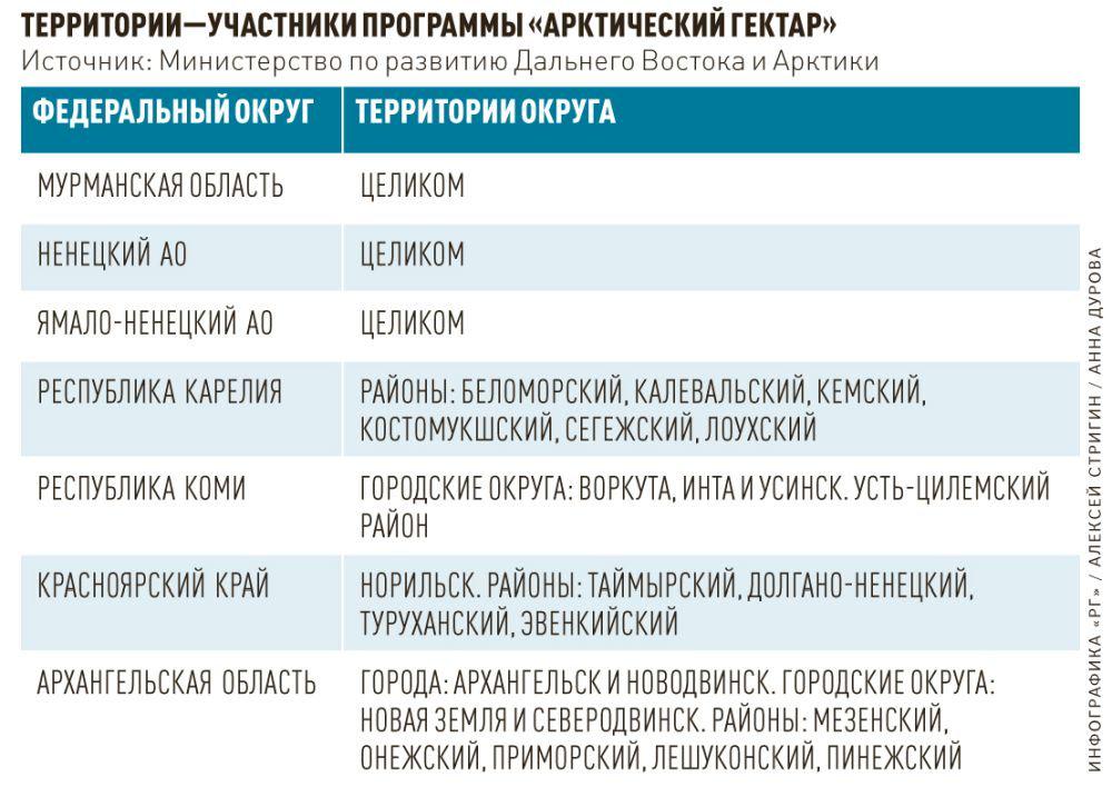 "Арктический гектар" смогут получить и жители четырех северных муниципалитетов Республики Коми - это города Воркута, Инта, Усинск и Усть-Цилемский район. Здесь можно претендовать на участок площадью до одного гектара. Землю выдадут на пять лет, за это время участок необходимо освоить: построить дом или организовать бизнес. Тогда появится возможность оформить его в собственность и платить земельный налог, который будет рассчитываться от кадастровой стоимости. Есть и второй вариант - взять землю в аренду на 49 лет.