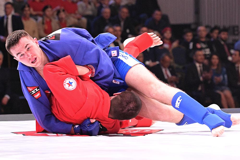 Боевое самбо пользуется особым вниманием: этот вид и захватывающий, и рискованный. Тем приятнее победа в весовой категории 100 кг камерунца Сейду Нжи Моулока. Ему 27 лет. В финале он одержал победу над Анатолием Волошниковым с Украины. Третье место у серба Драгана Боковича - порадовал соотечественников, которые в трудный момент взяли на себя проведение чемпионата.