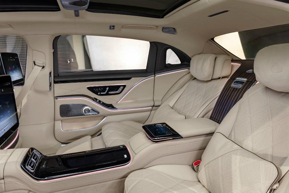 Весь прирост используется для повышения комфорта задних пассажиров. В задней части салона Maybach комплектуется раздельными креслами повышенной комфортности Executive. Помимо множества регулировок, в них есть выдвижная подпорка ног, для правого седока также предусмотрена раскладная опора ступней в спинке переднего пассажирского места. Ход регулировки подпора для ног увеличен примерно на 50 мм по сравнению с предыдущей моделью. Кроме того, в рамках комфорт-пакета подпор для ног оснащается новой функцией икроножного массажа.
