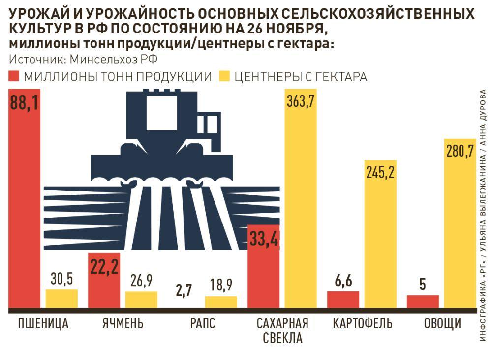 Фермеры собрали почти 58 тысяч тонн картофеля при средней урожайности 214 центнеров с гектара. Урожай овощей открытого грунта составил порядка девяти тысяч тонн при урожайности 357 центнеров с гектара. Собственных запасов хватит до мая, затем настанет пора ранних овощей нового урожая из южных регионов.