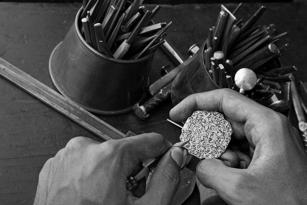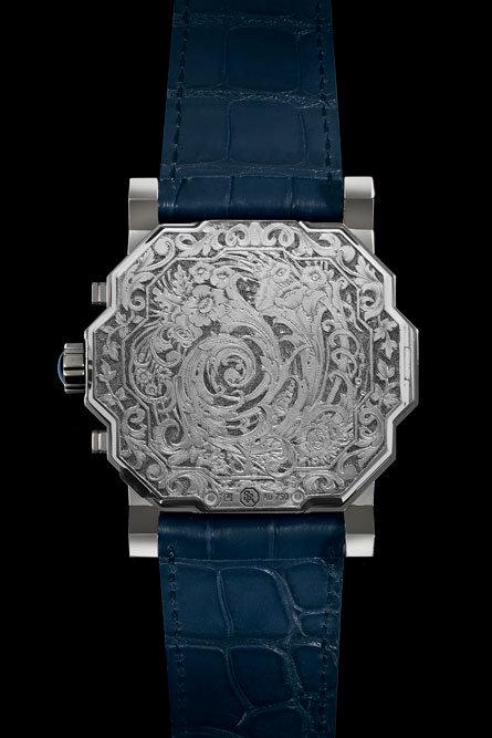 Инкрустация бриллиантами огранки "принцесса" выполняется в мастерских Stefano Ricci во Фьезоле. На заднюю крышку вручную нанесена гравировка: цветочный узор с подчеркнутым контрастом света и тени.