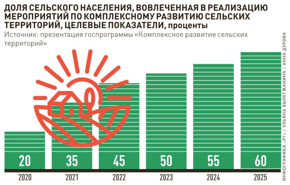 Кстати, льготная сельская ипотека, которая в этом году пользуется у россиян огромной популярностью, также является инструментом госпрограммы комплексного развития сельских территорий. Граждане РФ в возрасте от 21 года до 65 лет могут получить кредит по ставке до трех процентов годовых на покупку или строительство жилья в селах и малых городах.