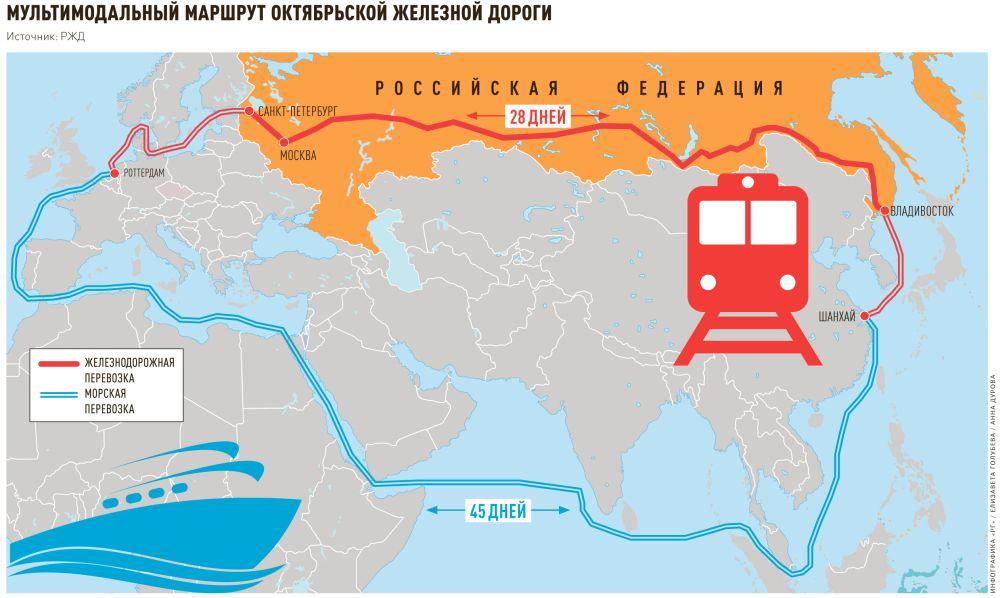 Совместно с компанией GEFCO мы сформировали логистическую цепочку, которая в разы быстрее, чем исключительно морской путь, и сопоставима по цене. Так, по выстроенной нами логистической схеме грузы из Китая через порты Шанхай и Нинбо доставляются до порта Восточный во Владивостоке, далее по железной дороге следуют до Петербурга и затем по морю отправляются в Роттердам и Антверпен. При реализации данной цепочки срок доставки составляет 28 дней, а не 45, как если бы перевозка осуществлялась исключительно морским транспортом.