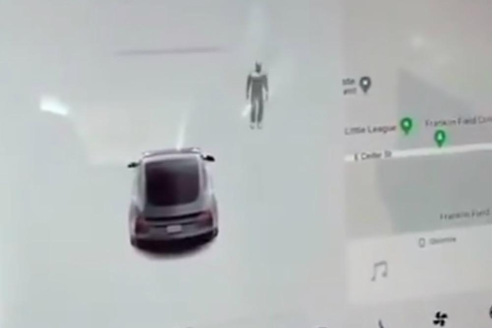 Мы видим, что автопилот показывает на экране схематичного человечка - рядом с машиной кто-то ходит. Хотя, если посмотреть вокруг самому, поблизости нет никого живого.
