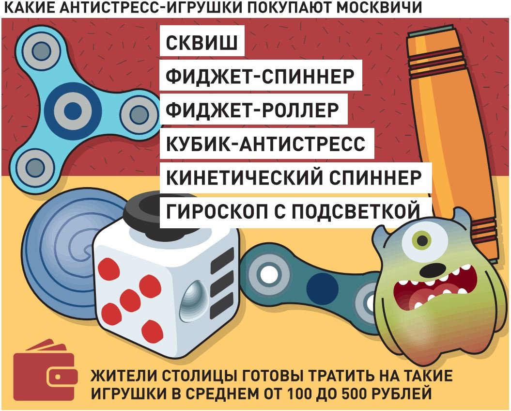 По данным компании, выросла популярность игрушек и в сравнении с минувшим декабрем - спрос подскочил на 60%. Самые активные покупатели живут в двух столицах. И это неудивительно - и Москва, и Петербург часто ассоциируются с сумасшедшим ритмом жизни и большим числом трудоголиков. Как оказалось, жители мегаполисов предпочитают бороться со стрессом с помощью сквиша - так называют игрушку, которая после сжатия руками медленно восстанавливает свою форму. В сравнении с прошлым годом она стала популярнее вдвое. Снова проснулся интерес к фиджет-спиннерам - проще говоря, это вертушки для пальцев. Их продажи подскочили более чем в два раза. Фиджет-роллер - еще одна игрушка против стресса с экстравагантным именем - продавалась в 4,5 раза чаще. На треть увеличился спрос на антистресс-кубики. Рейтинг же продаж и в 2020-м, и в первом месяце 2021-го возглавил переворачивающийся кинетический спиннер. Следом идут сквиш-плитка с шариками для надавливания и вращающийся гироскоп с LED-подсветкой. Москвичи готовы тратить на них в среднем от 100 до 500 рублей.
