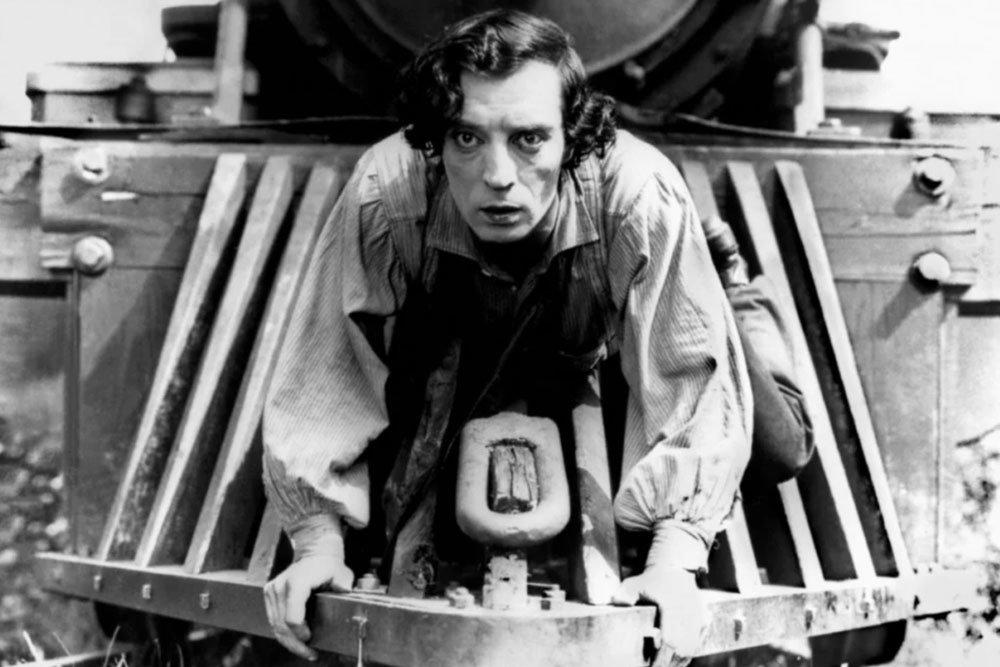 Из его огромного наследия выделю полнометражную комедию "Генерал" (1926). Это самый дорогой проект Великого Немого (415 232 долл.) с многолюдными комическими сражениями, гонками на паровозах и падением поезда с моста в реку, выполненным вживую, без спецэффектов. Картину сравнивают с лучшими фильмами о Гражданской войне Севера и Юга в США. В основе - реальный случай: группа солдат в штатском проникла в тыл южан, вышла к станции и, пока пассажиры поезда завтракали, угнала паровоз под названием "Генерал", держа путь к своим в Чаттанугу, сжигая за собой мосты и обрывая телеграфные провода. Обнаружив пропажу, машинист с одним из пассажиров пустились в погоню пешком, потом на дрезине, потом на паровозе. Настигли шпионов и захватили их вместе с добычей.