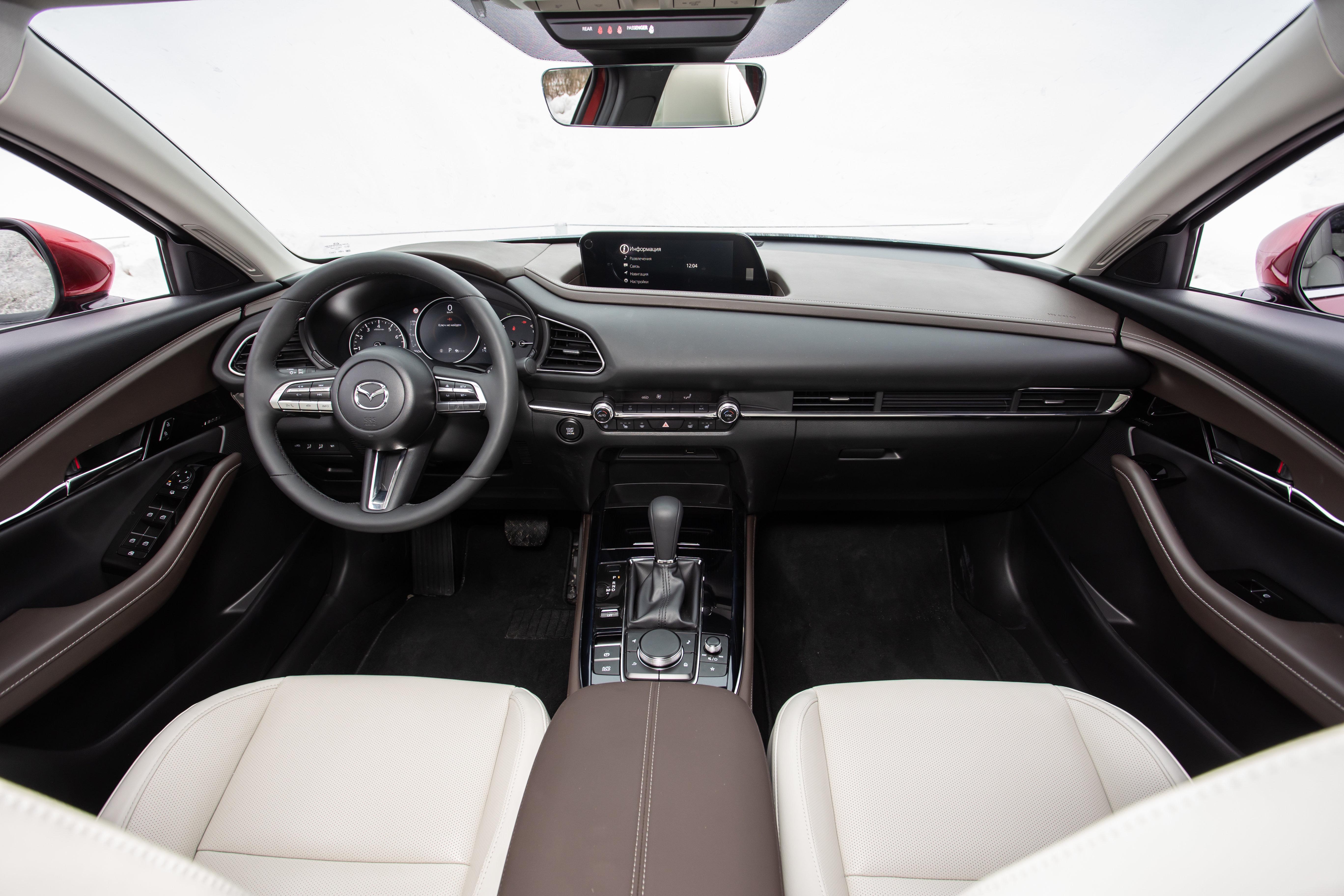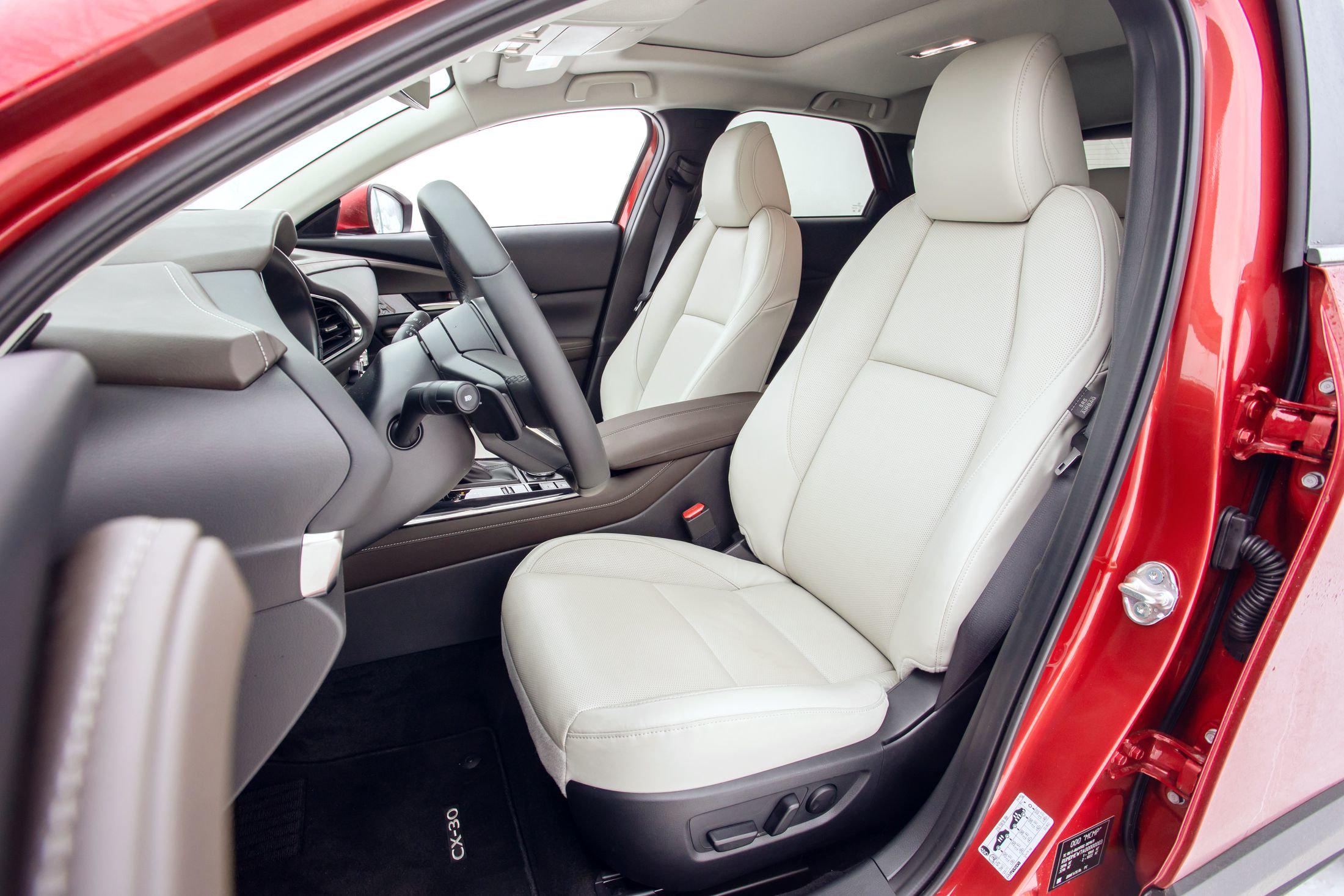 Не секрет, что Mazda с каждой новой машиной старается все больше и больше приблизиться к премиуму. CX-30 - не исключение. У нас на тесте были машины в топовой комплектации Supreme, которая отличается двухцветным кожаным салоном.