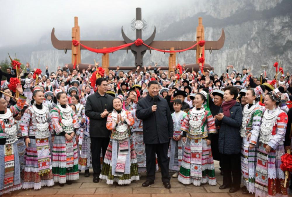 "В этом году мы добьемся великой победы во всестороннем построении общества средней зажиточности и достигнем первой цели "двух столетий", - сказал Си Цзиньпин, общаясь с жителями на деревенской площади. - Ни одна этническая группа не должна остаться в стороне".