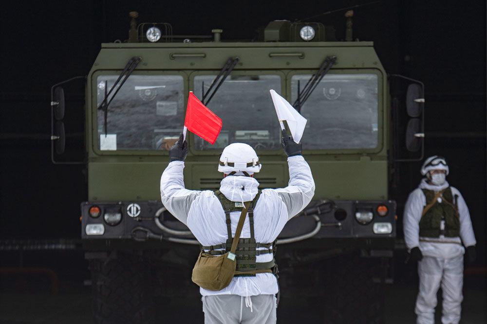 Повинуясь флажкам солдат в белых маскхалатах, пусковые установки "Искандеров" вытягиваются из боксов и выстраиваются в колонну. По телевизору не понять, насколько внушительны эти машины вблизи. Восемь колес в рост человека, на них зеленая коробка величиной с дом. За стальными сетками вращаются огромные вентиляторы. Штатные стоп-сигналы на таком чудище выглядят неуместно. Впереди колонны встают два бронированных "КамАЗа" - командный пункт батареи и машина жизнеобеспечения (МЖО). Неизвестно, сколько времени ракетчикам придется провести в полях, поэтому в МЖО есть шесть спальных мест, электрическая плита, обеденный стол и сушилка.