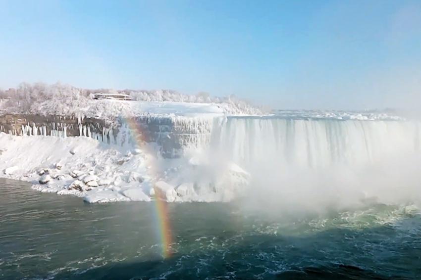 Из-за аномальных морозов, доходящих до минус тридцати - сорока, а то и пятидесяти градусов по Цельсию на границе США и Канады частично обледенел знаменитый Ниагарский водопад. Кадры "замороженной" природной достопримечательности облетели все мировые СМИ.