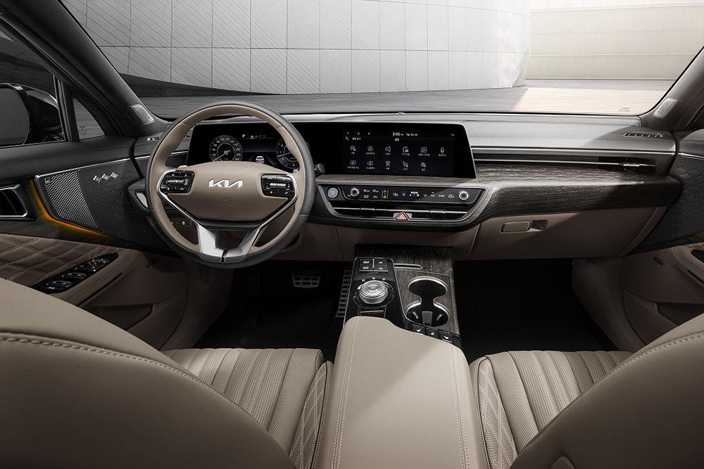 K8 получил рулевое колесо нового дизайна с новым логотипом марки в центре, изогнутую панель, образованную 12-дюймовыми экранами приборной панели и мультимедийной системы. Управление климатической системой осуществляется при помощи сенсорной панели. Для заказа будут доступны версии с аудиосистемой премиум-класса Meridian с 14 динамиками.