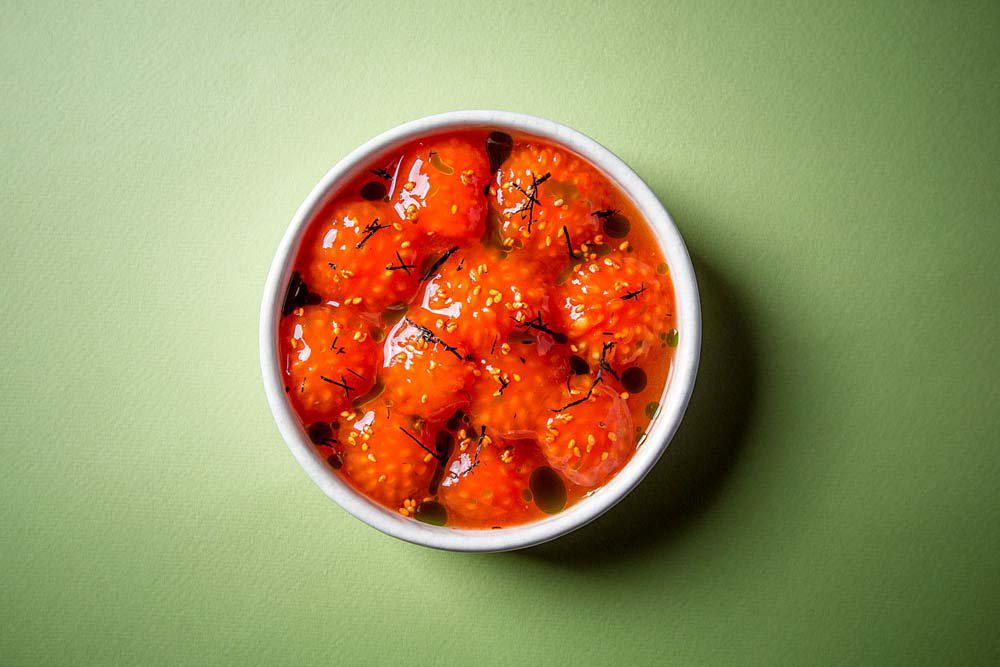 А вот ради такого оригинального блюда стоит даже взять билет до Сочи, чтобы зайти в кафе "Дельфин и Русалка" (оно расположено в одном из крыльев Морского вокзала). Кухней здесь заправляет Илья Захаров, шеф с большим опытом и неистощимой способностью к выдумке. Он убедит вас, что блюда без мяса могут быть разнообразными и неожиданными - например, предложит холодец (!) из сочных томатов с маринованными грибами. Нори, кимчи, пряный маринад и кунжут делают томатный холодец прямым конкурентом его протеинового тезки.