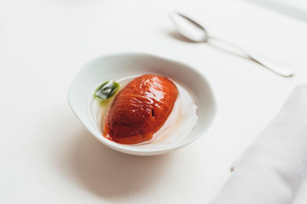 Шеф-повар ресторана Alice Артем Чудненко в постном меню тоже придерживается концепции элегантных блюд с минимальным числом компонентов и максимумом вкуса. В них он исходил не из самоограничения, а из весеннего обновления, когда природа расцветает и оживает. Меню совсем небольшое: всего из четырех, но весьма изящных, блюд. Среди них особенно выделяется сорбет из печеных перцев с имбирным кордиалом и маслом из базилика. Для него к запеченным на открытом огне и оттого чуть дымным перцам добавляют сублимированную малину. Она выводит овощной баланс сорбета в почти ягодный вкус десерта.