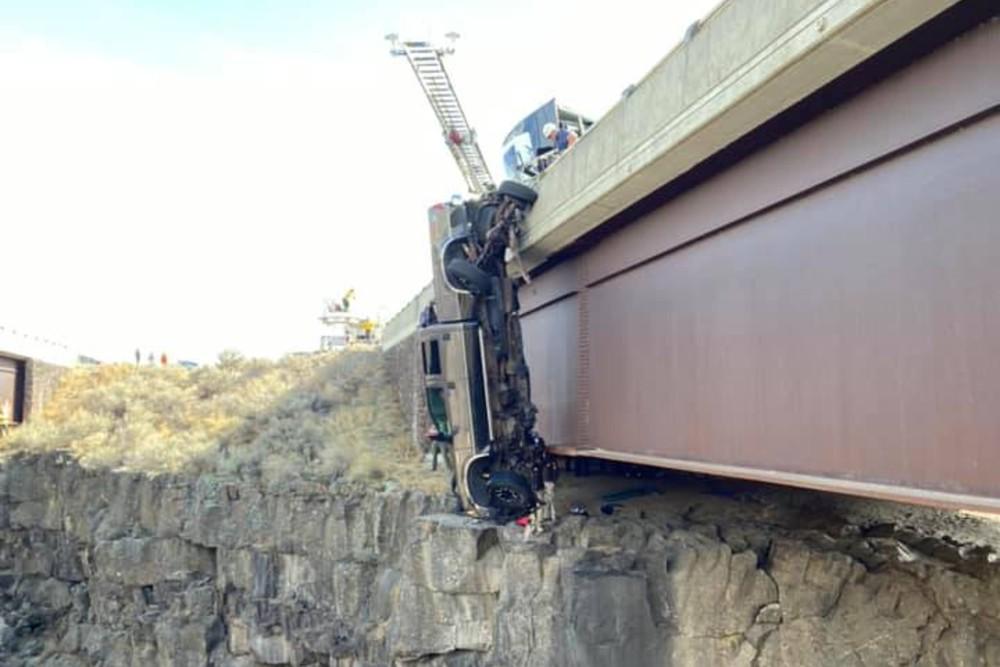 В американском штате Айдахо едва не случилась страшная трагедия: пикап Ford сорвался с моста, и жизни двух людей, находящихся в нем, буквально висели на волоске.