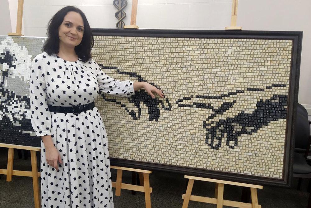 Исполнительный директор Фонда рационального природопользования Александра Кудзагова демонстрирует один из самых неординарных вариантов "второй жизни" электроники - трёхмерные картины из кнопок отслуживших клавиатур. Фото: Ольга Бухарова