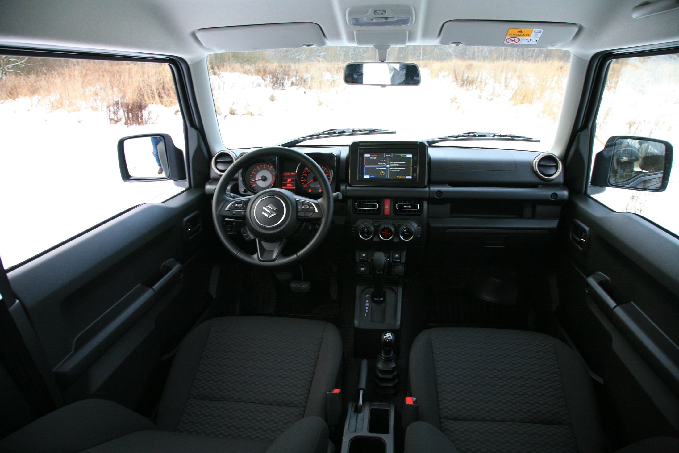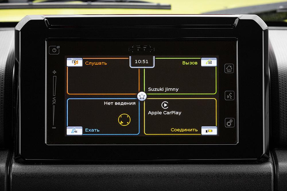 Как и у предшественника, площадь остекления огромна, габариты, соответственно, отлично ощущаются. Похожий форм-фактор работает также и на Niva Legend. Но если вы возьмете Jimny начальных комплектаций, то получите "галогенки", а не светодиодную оптику, датчиков парковки не будет вовсе, а камеру заднего вида можно дозаказать как опцию только для топовой версии. Ну или доустановить у дилера. В общем, как вы поняли, маркетологи Suzuki считают, что все эти "гражданские" штучки их "кубику" не нужны.