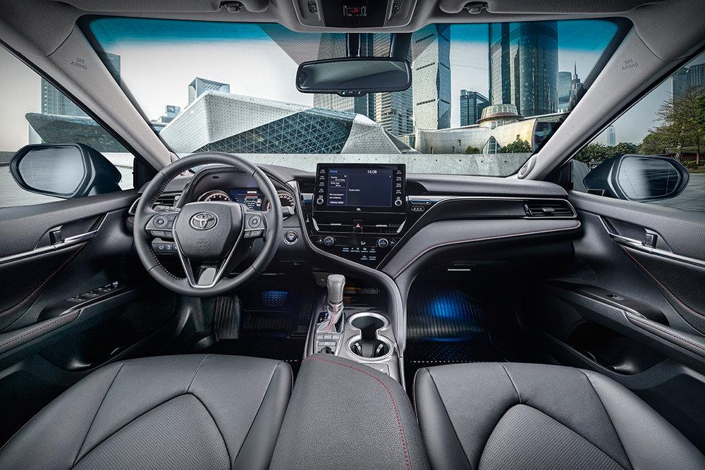 Обновлённый бизнес-седан можно будет заказать с пакетом GR Sport. Camry в этом исполнении окрашивается в белый или красный цвета и имеет чёрную крышу.