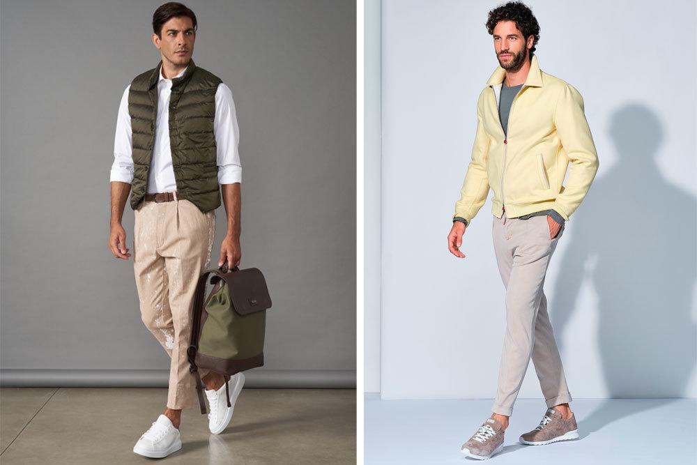 Мягкий трикотаж пастельных цветов уместен и женском, и в мужском гардеробе. Только мужчинам рекомендуется дополнять его узкими брюками, подчеркивающими фигуру и оставляющими хотя бы какой-то намек на силуэт "перевернутого треугольника".