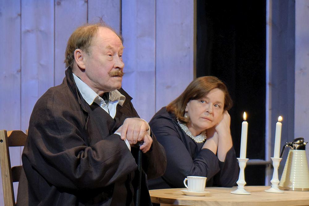 Герои - пожилые люди. Ведут неспешные разговоры, предаются воспоминаниям. Спектакль рассчитан на старшее поколение?