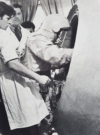 Ученым и конструкторам важно было понимать, как поведет себя человеческий организм в самых экстремальных условиях. И как можно его надежно защитить. Причем не только при реактивных скоростях, но и космических. Испытатели "примеряли" на себя все суперперегрузки, гипокинезию, резкие перепады давления, запредельные температуры, вибрации и шумы, ионизирующие излучения, длительную изоляцию в сурдокамере... Проще сказать, через что они не прошли.