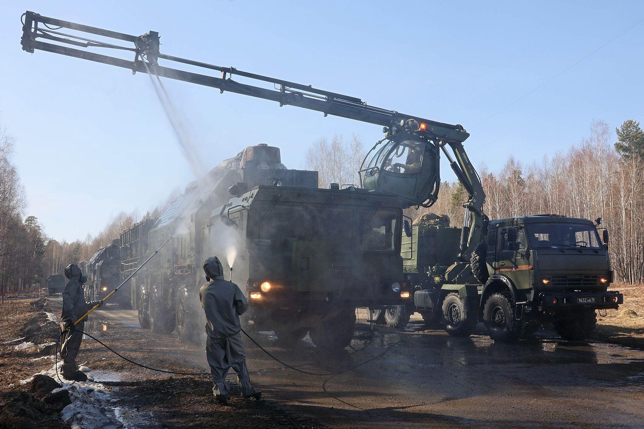 Так, при совершении марша под Нижним Тагилом колонна ПГРК преодолела условно зараженный участок местности, на котором "противник" использовал химические фугасы с отравляющими веществами, передает пресс-служба РВСН. После вывода техники из опасной зоны, подразделения радиационной, химической, биологической защиты обработали ракетный комплекс.