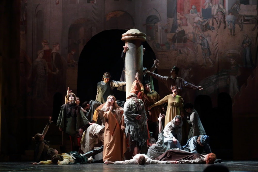 В этой ситуации Разенкову, лауреату "Золотой маски", постановщику нескольких мюзиклов, но с опереттой имеющему дело нечасто, многое удалось, разумеется, вместе с командой постановщиков. Помещенный в визуальное пространство, колоритом и фактурой напоминающим искусство итальянского Возрождения (сценограф Эрнст Гейдебрехт), спектакль вышел легким, смешным, стремительным и не теряющим современной интонации. Главным в этой метаморфозе стал текст драматурга и поэта Константина Рубинского. В сущности, ему удалось вернуть оперетте то, за что она во все времена была обожаема публикой - связь с сегодняшним днем, острые сатирические нотки и повод не только хохотнуть, но и задуматься о чем-то серьезном. Действие спектакля начинается во Флоренции, только что пережившей ужасы чумы, и зрители бурно реагируют на реплику Боккаччо (Антон Сергеев в одном составе и Евгений Елпашев в другом): "Господа, вы, кажется, готовы нарушить безопасное расстояние в полтора локтя!". Троица городских обывателей в прежнем либретто ремесленников, а здесь повышенных до статуса епископа, сенатора и судьи, борется не столько с Боккаччо - искателем приключений, сколько с вольнодумствующим сочинителем. Предлагается, принять "закон о клевете и оскорблении чьих-нибудь чувств". Как говорится, "было бы оскорбление", а статья для "бумагомарателя" всегда найдется.