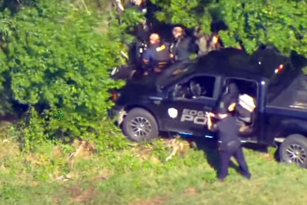Угонщик гнал по хайвею, его настигла машина полиции и слегка ударила в правую заднюю часть. Управление было потеряно, и авто улетел в кусты. Догонявшие копы выбежали из своих патрульных автомобилей и ринулись арестовывать бандита, который в это время выбежал из посадки, сел в полицейский внедорожник и, пока полиция пыталась выстроить диалог с ним, дал по газам и поехал дальше.