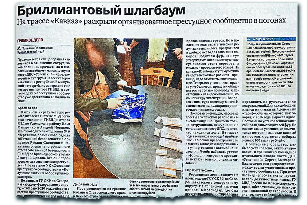 Кстати, о его участии в систематических вымогательствах на посту ДПС "Успенский" "РГ" в свое время подробно писала. Напомним, речь в этих материалах идет о том, как группа полицейских на трассе "Кавказ" зарабатывала на водителях, которые проезжали через пост ДПС "Успенский" на границе Кубани и Ставропольского края. Как выяснили следователи, "деньги полицейские получали "за непривлечение к ответственности лиц по выявленным уголовно наказуемым деяниям и административным правонарушениям". Также взятки брались за беспрепятственный проезд через стационарный пост транспортных средств, незаконно перевозящих товары и спиртосодержащую продукцию". То есть мздоимцы "крышевали" провоз левого алкоголя, который затем расползался по всей стране. Полицейские действовали по разработанной схеме: четыре смены сотрудников стационарного поста ДПС должны были систематически брать взятки и в конце дежурства передавать их руководителям подразделений. Для каждой смены имелся минимальный "тариф", который с 2016 года вырос вдвое. По данным следствия, за четыре года только на этом посту было собрано взяток на 50 миллионов рублей.